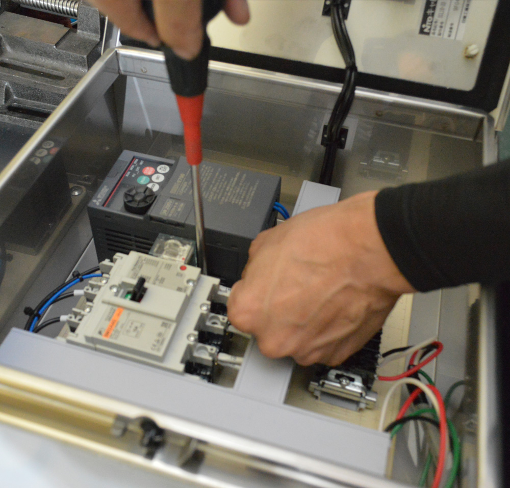 設計・組立・試運転を経て、現地にて制御盤取付致しました。